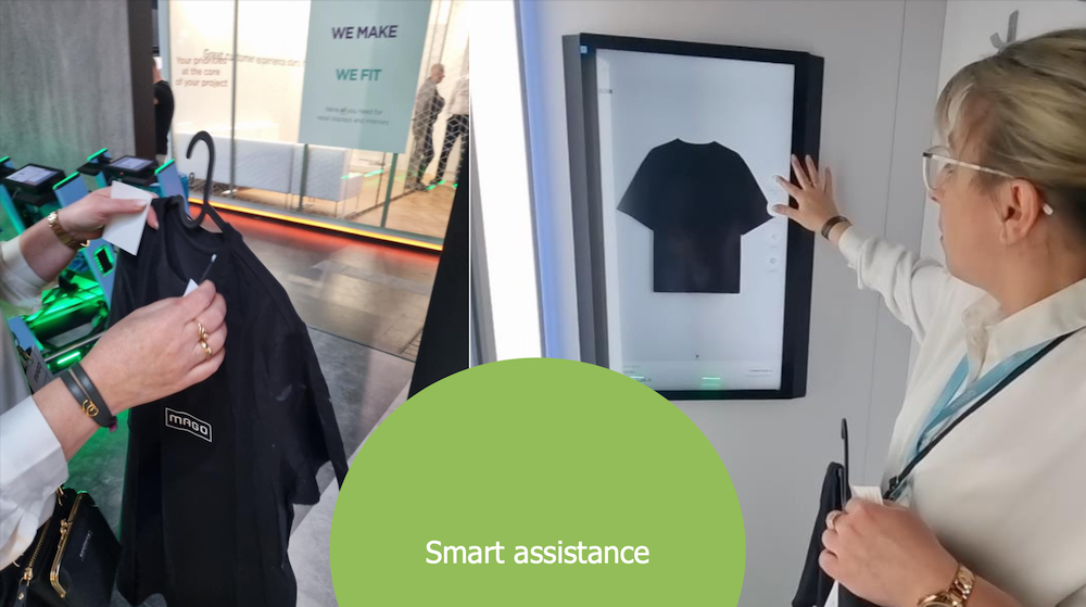 Умный ассистент. Сейчас часто дискутируют на тему: какие функции надо передать электронному помощнику, а какие – человеку. Мне понравилось решение, когда в примерочной после сканирования электронный помощник сразу показывает человеку имеющуюся размерную сетку, и при необходимости человек может запросить нужный размер. Эта информация попадает к консультанту и он сразу знает в какую примерочную, какую вещь и какого размера надо отнести. А пока человек ожидает нужный размер, электронный ассистент предлагает дополнительные вещи, которые могут составить хороший комплект с выбранным товаром. То есть таким образом можно еще и увеличивать средний чек и предлагать покупателю дополнительные позиции. К тому же, это экономит время как покупателя, так и консультанта.