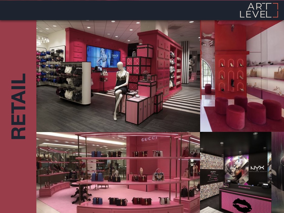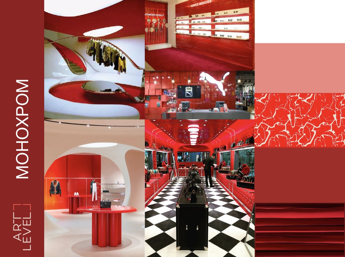 В этом году основным цветом является Viva Magenta – это специфический оттенок розово-фиолетового, который часто ассоциируется с энергией, творчеством и смелостью. Его можно использовать в различных вариациях, сочетаниях или в моноколоре для оформления торговых зон и витрин. Такой подход транслирует современность и актуальность бренда.