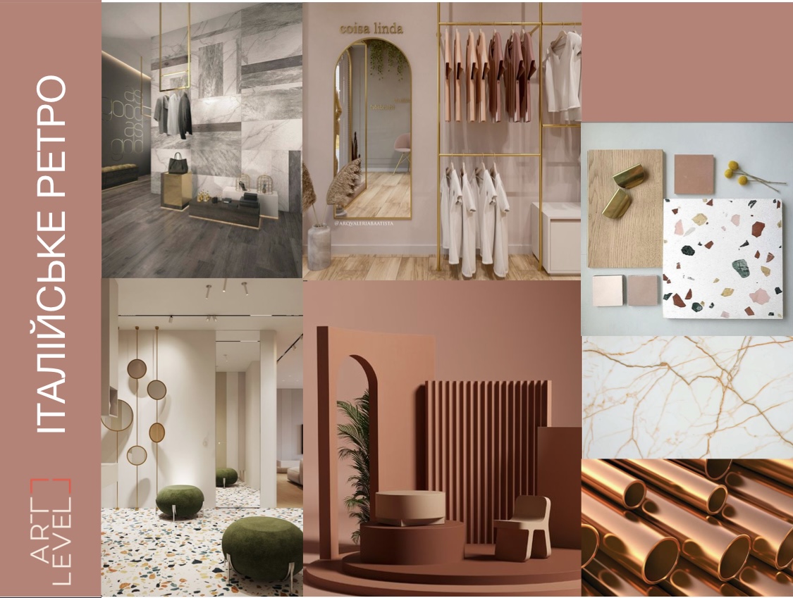 Итальянское ретро. Этот стиль характеризуется ретро-формами, приглушенными цветами, миксом факта и блеском металла.