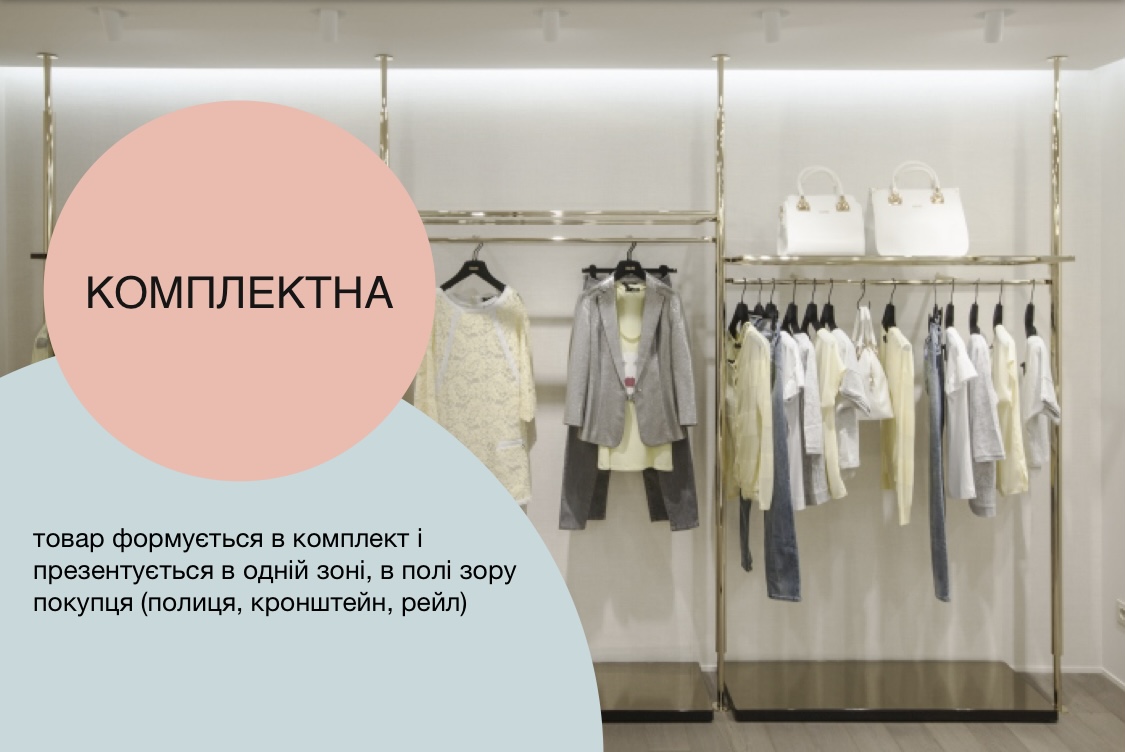 - пространство нужно поделить на необходимое количество зон. В разный сегментах будет разное количество зон. Я выделяю пять различных зон (вывеска, вход и витрины; входная зона, которая представляет товар и составляет первое впечатление на покупателя; торговый зал; зал отдыха и примерочные; кассовая зона, где покупатель получает стресс от траты денег);