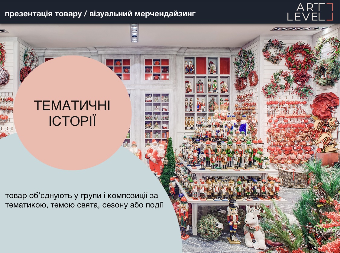 - группировать товар в зависимости от цели и события,