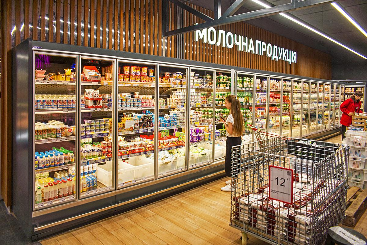Трансформация торгового пространства в супермаркете, как и в других торговых точках сети, была проведена в соответствии с современными тенденциями в сфере розничной торговли. В частности, применены стильные дизайнерские решения и установлено современное торговое оборудование европейского образца.