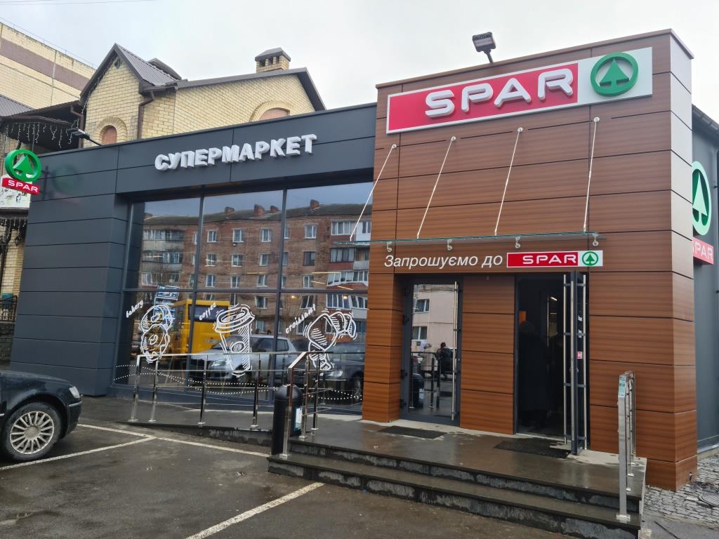 В Украине сеть развивается по системе франчайзинга и предлагает четыре торговых формата: SPAR Express (магазины у дома торговой площадью до 200 кв.м), SPAR (супермаркеты 200-800 кв.м), EUROSPAR (супермаркеты 800-3000 кв.м), INTERSPAR (гипермаркеты более 3000 кв.м.). Ключевые ценности SPAR для покупателей – это широкий ассортимент качественных и свежих товаров, европейские стандарты обслуживания, индивидуальный подход к каждому клиенту, комфорт и уют в каждом магазине.
