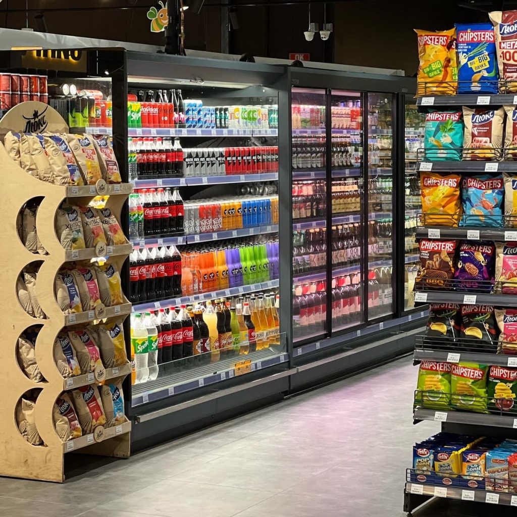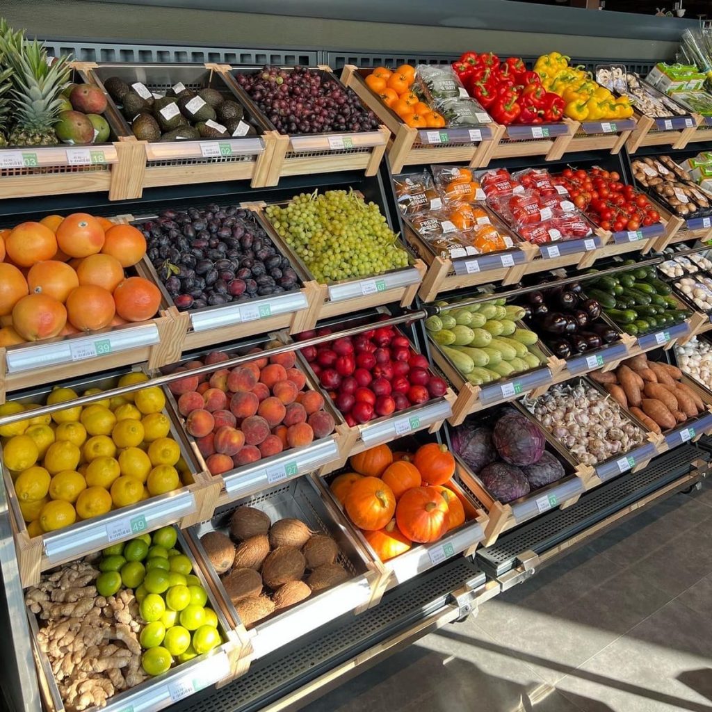 В ассортименте представлены свежие овощи и фрукты, охлажденная рыба, охлажденное мясо, самые необходимые продукты и товары для дома. Для быстрого и удобного перекуса в магазине работает кафетерий с 15 вкусами фирменной пиццы и кулинарии.