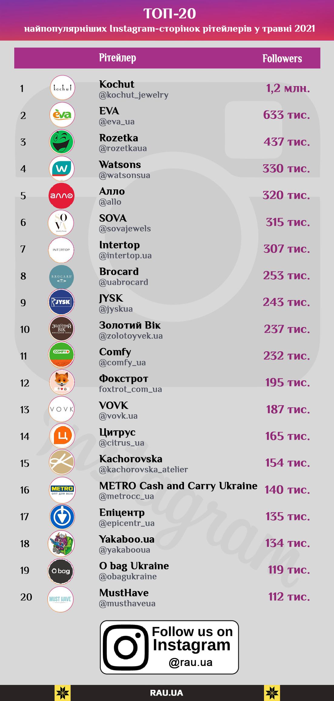 Рейтинг року: топ-20 українських рітейлерів у Facebook та Instagram у 2020 році