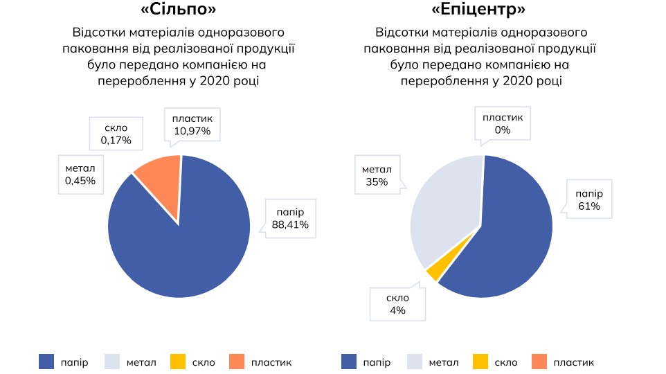 - Сільпо: бумага – 19,631, стекло – 0,37, металл – 0,1, пластик – 2,436