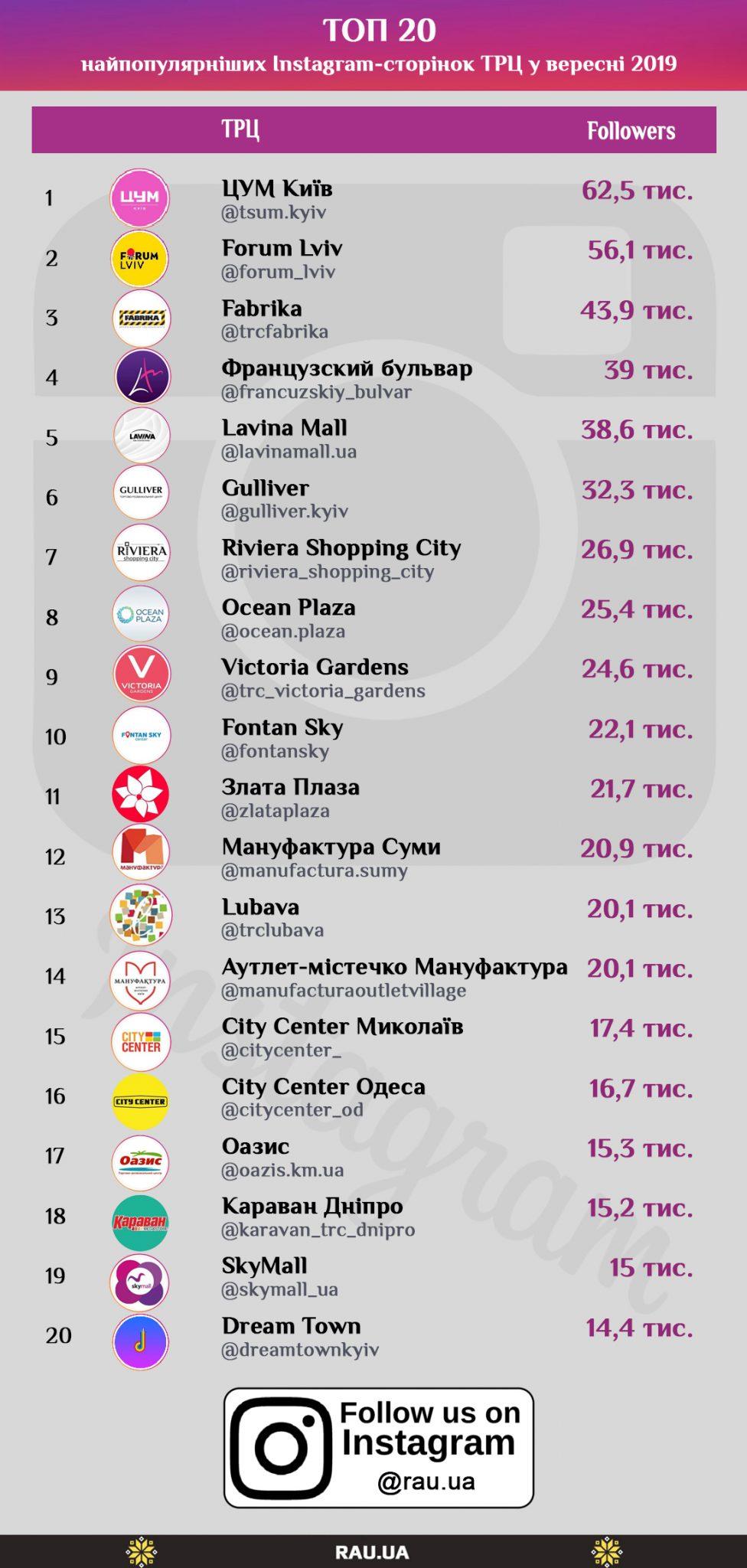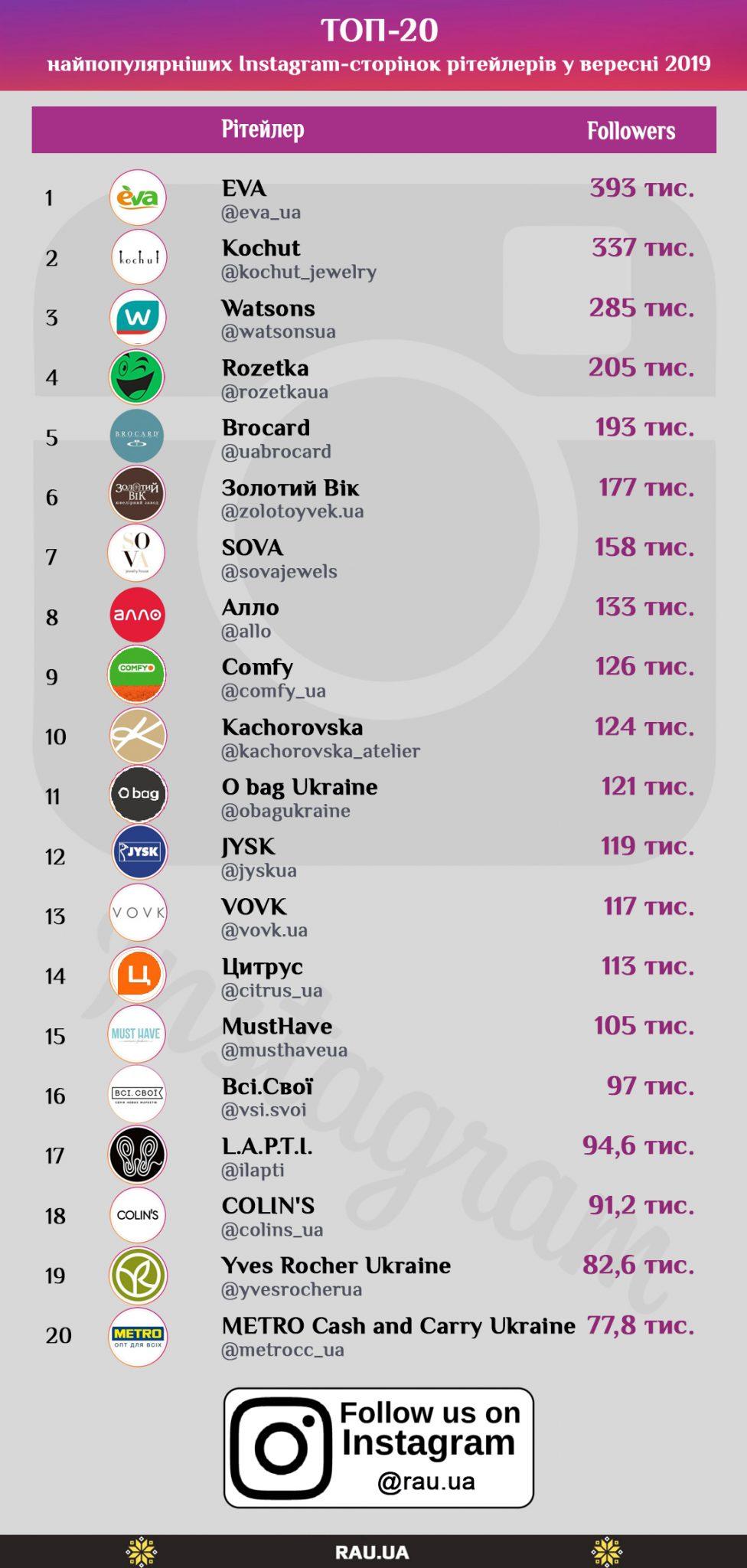 По итогам лета: топ-20 Instagram-страниц украинских ритейлеров и ТРЦ