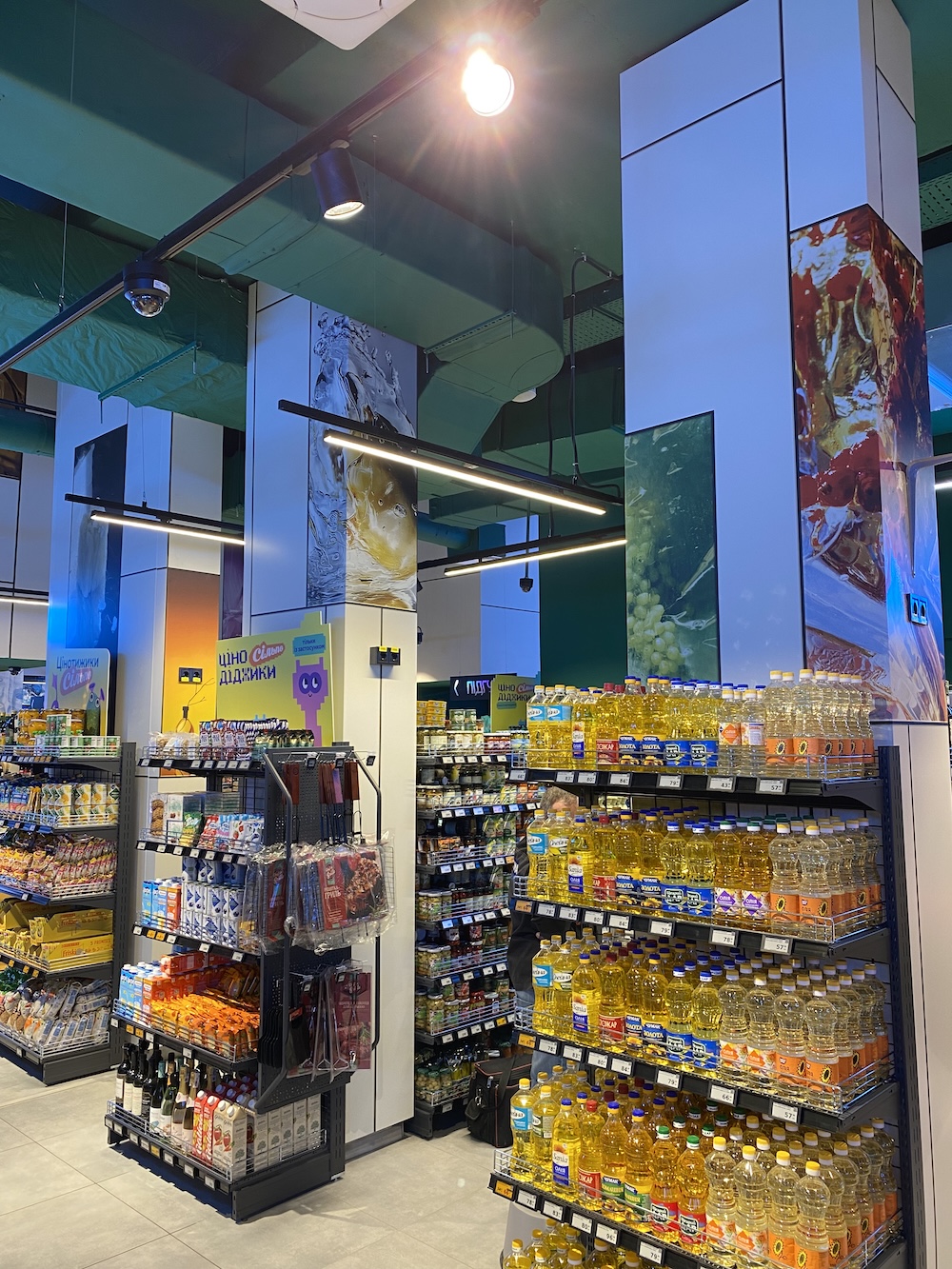 16 января сеть супермаркетов Сільпо открыла новый магазин в Киеве в концепции «Мир Зазеркалья» по адресу: г. Киев, ул. Олеся Бердника, 1 Г. Пространство нового магазина оформлено в стиле авангарда: закольцованный лабиринт с декоративными проходами и нишами приглашает гостей исследовать магию отражений и открывать новые грани воображения.