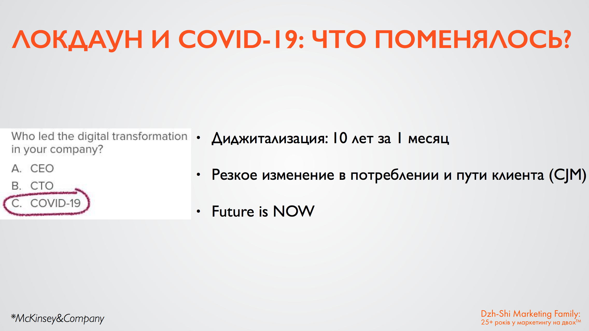 По оценкам экспертов McKinsey&Company, за 3-5 недель мы прошли путь развития, который в обычное время занял бы около 10-ти лет. В сферах медицины, фармацевтики, ритейла, обучения и работы произошел колоссальный скачок вверх.