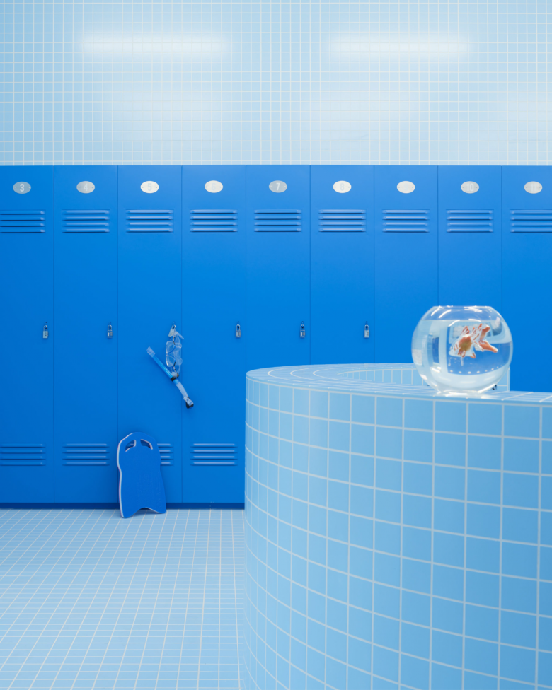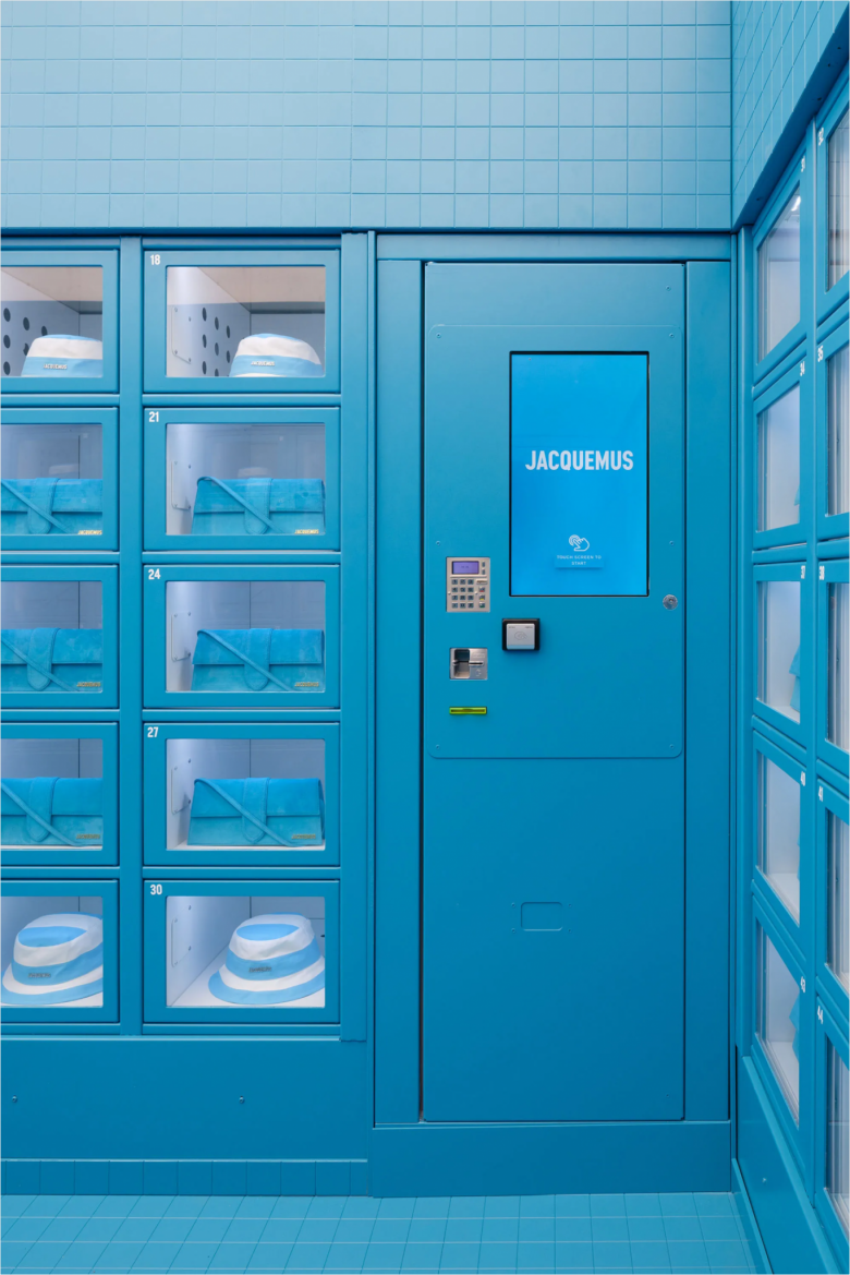 Третье пространство, получившее название Le Vestiaire, находилось в отеле Old Selfridges, расположенном на территории универмага. Здесь креативный директор бренда Симон Порт Жакмюс создал иммерсивную визуальную инсталляцию, напоминающую раздевалки бассейна и вдохновленную фильмами французского режиссера Жака Тати.