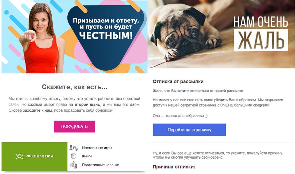 Для удержания отписавшихся пользователей разработали специальную форму, в которой им предлагалось перейти на секретную страницу и получить скидку за то, что они передумают. В итоге число отписок сократились на 20% в сравнении с предыдущим периодом.