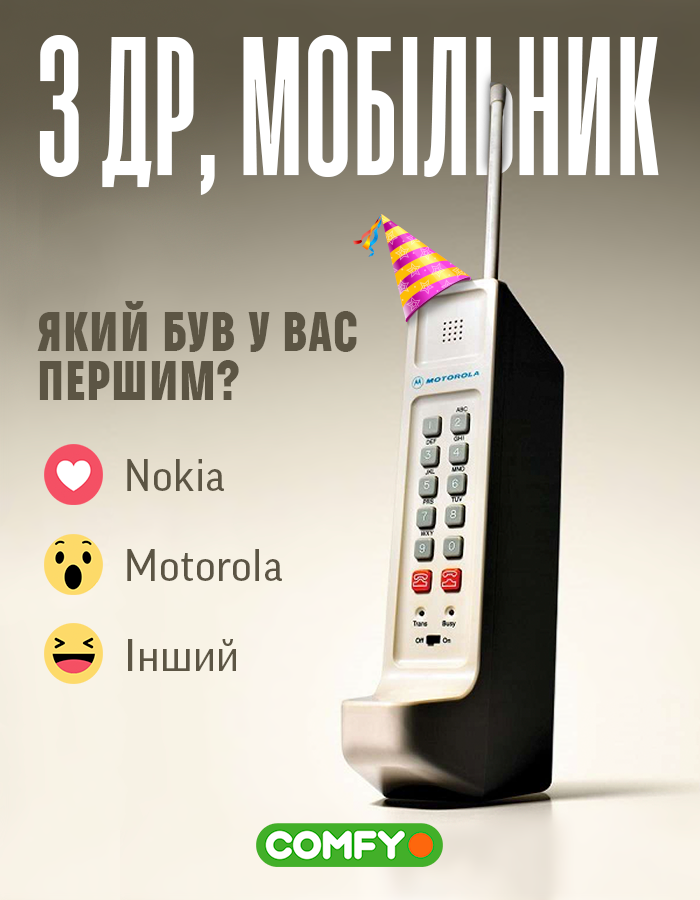 Кто бы мог подумать, но мобильники гораздо старше многих из нас. Comfy поздравили мобильный телефон с 46-летием: “Ты так изменился за эти годы: похудел, научился делать много крутых штук и стал умнее, иногда даже нас. Не останавливайся на достигнутом!” Как тут не умилиться?