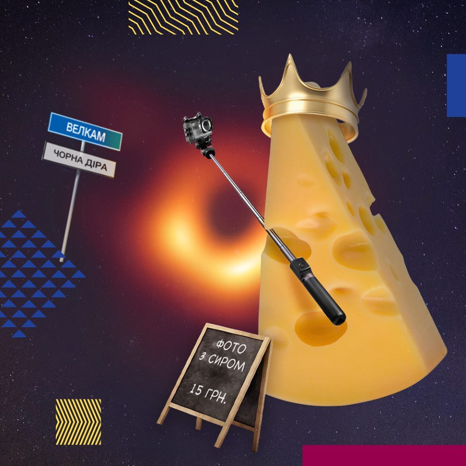 В апреле ученые сделали сенсационное заявление: им удалось впервые сделать фотографию черной дыры – сверхмассивного коллапсара в далекой галактике Messier 87, находящейся в скоплении Девы. И хотя расстояние от Пирятина до до этой черной дыры – около 50 млн световых лет, или почти 500 квинтиллионов (500 миллионов триллионов) километров, сыр Пирятин зачем-то решил, что черная дыра может захотеть с ним сфоткаться, а потом будет пытаться отобрать его популярность.