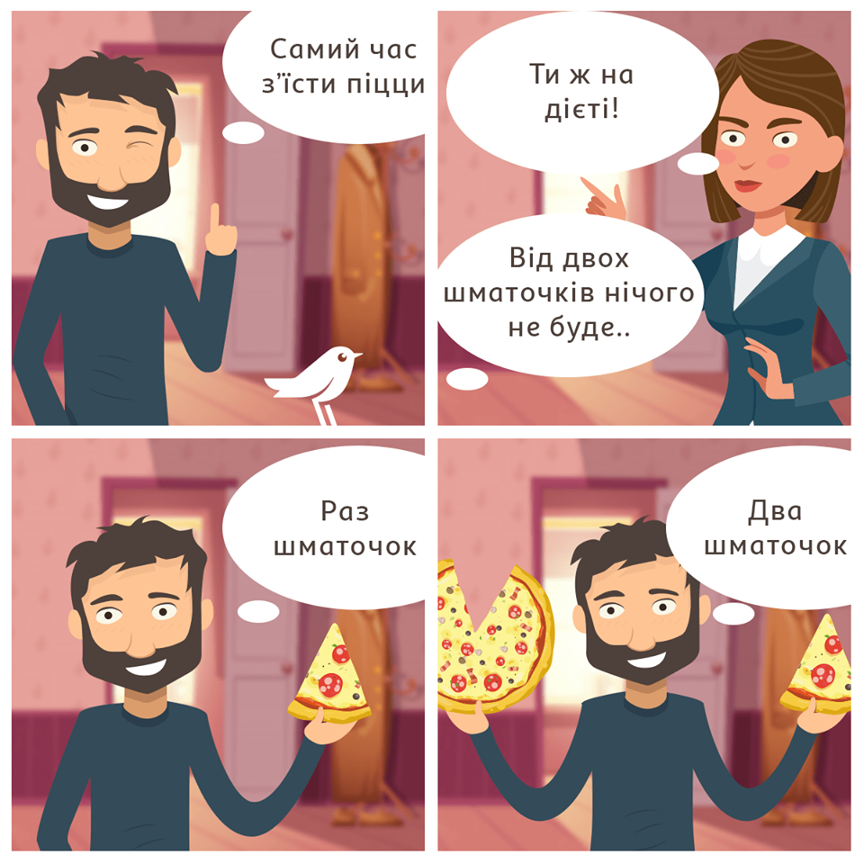 Еще в Ашан запилили забавный комикс на тему правильного употребления пиццы в сезон весенних диет.