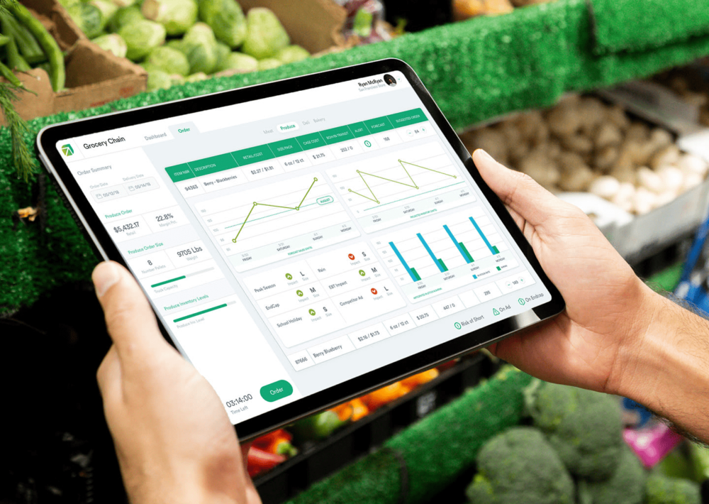 Работники супермаркетов заполняют опросник в своих айпедах, отмечая количество брокколи или помидоров, которые остались на полках. После этого система выдает автоматизированное предложение по объему следующего заказа.
