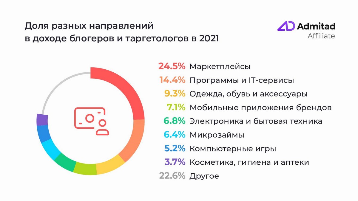 Вот какие отрасли, по данным Admitad Affiliate, сейчас пользуются наибольшей популярностью среди аудитории и приносят наибольшую долю доходов: