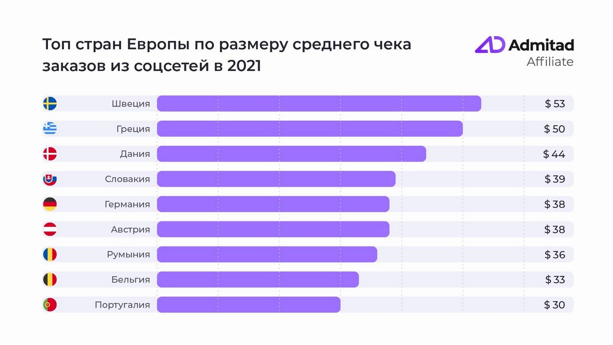 Однако по величине средней покупки из соцсетей Украина пока не входит в топ государств Европы: