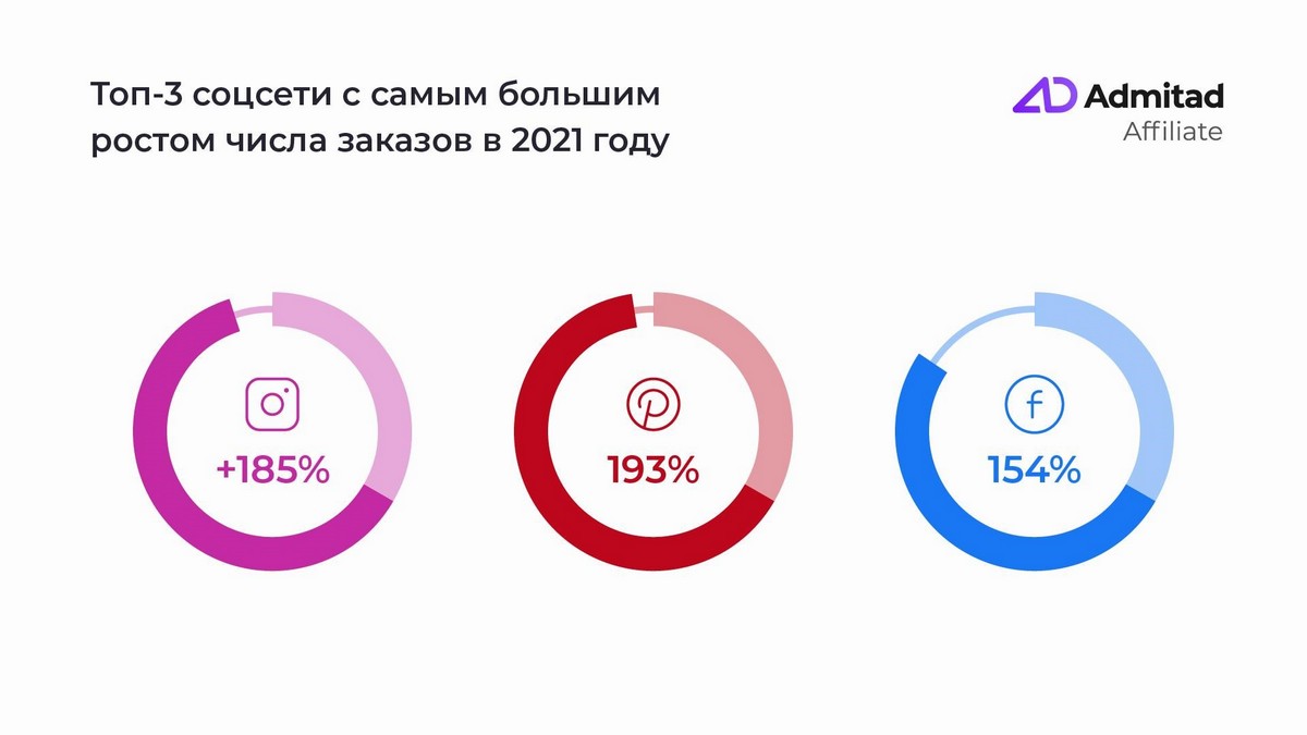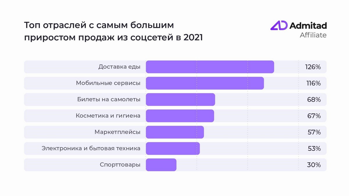 По данным партнерской сети Admitad Affiliate, в 2021 году сумма продаж в Украине через социальные сети выросла на 17%. Позитивная динамика сохраняется еще с прошлого года.