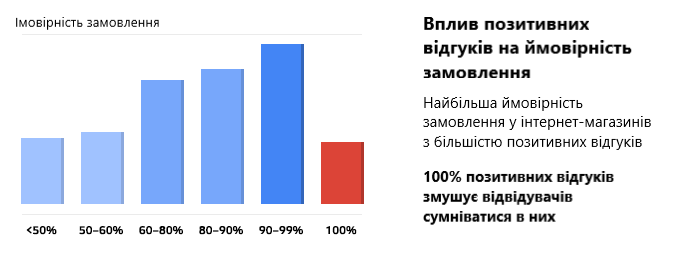 Аналитика также подтверждает, что наличие исключительно хвалебных отзывов отпугивает покупателей и снижает вероятность покупки. Все знают, что отзывы могут писать не настоящие клиенты, а пиарщики. А вот наличие плохих отзывов, рядом с которыми посетителям видны адекватные ответы на них менеджера интернет-магазина, вызывает доверие.