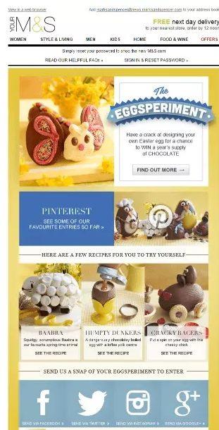 Еще один пример сообщения-для-лояльности – праздничная рассылка от Marks&Spenсer. Она интересна тем, что маркетологи пошли простым путем: не создавали уникальный контент, а предложили тематическую подборку из Pinterest: