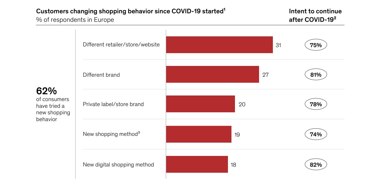 Пандемия потрясла лояльность клиентов по всем параметрам, предоставив новые возможности для развития продуктового ритейла. Свыше 60% европейцев изменили свои покупательские привычки, которые большинство из них намерены сохранить и после кризиса.