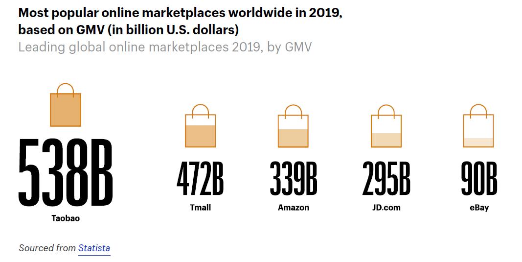 Около $2 трлн ежегодно тратится на 100 ведущих торговых площадках, и крупнейшие ритейлеры также выходят на рынок онлайн торговли.