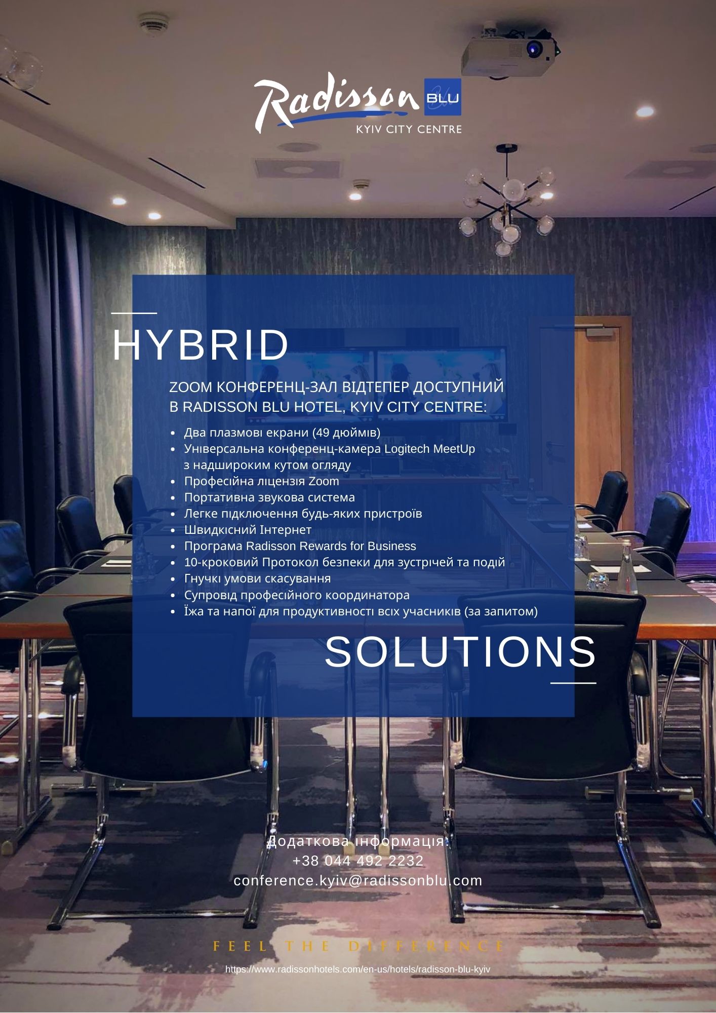 Концепция Гибридных решений уже доступна в отеле Radisson Blu Hotel, Kyiv City Centre. Компания старается соответствовать быстрым изменениям образа жизни современных путешественников и их меняющимся ожиданиям, когда они останавливаются, работают и организуют встречи в отелях.