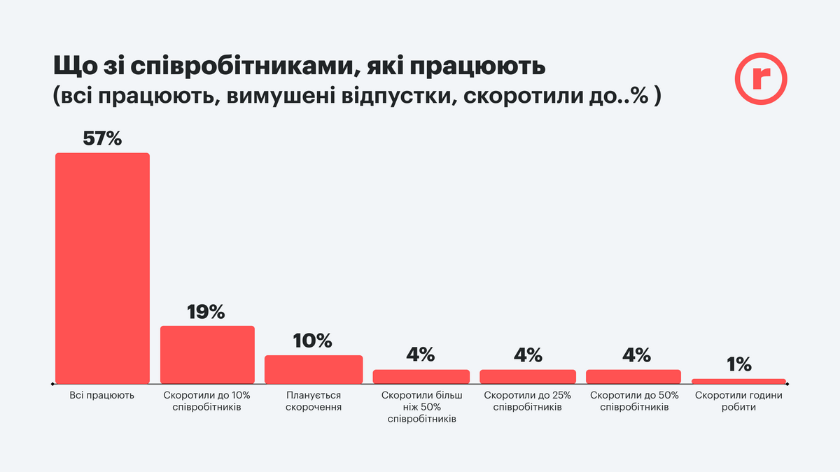 К сожалению, далеко не все ритейлеры смогли сохранить свои команды в полном составе. Таковых всего 57%, однако значительные сокращения персонала затронули только 12%, еще 10% готовятся к возможному сокращению штата.