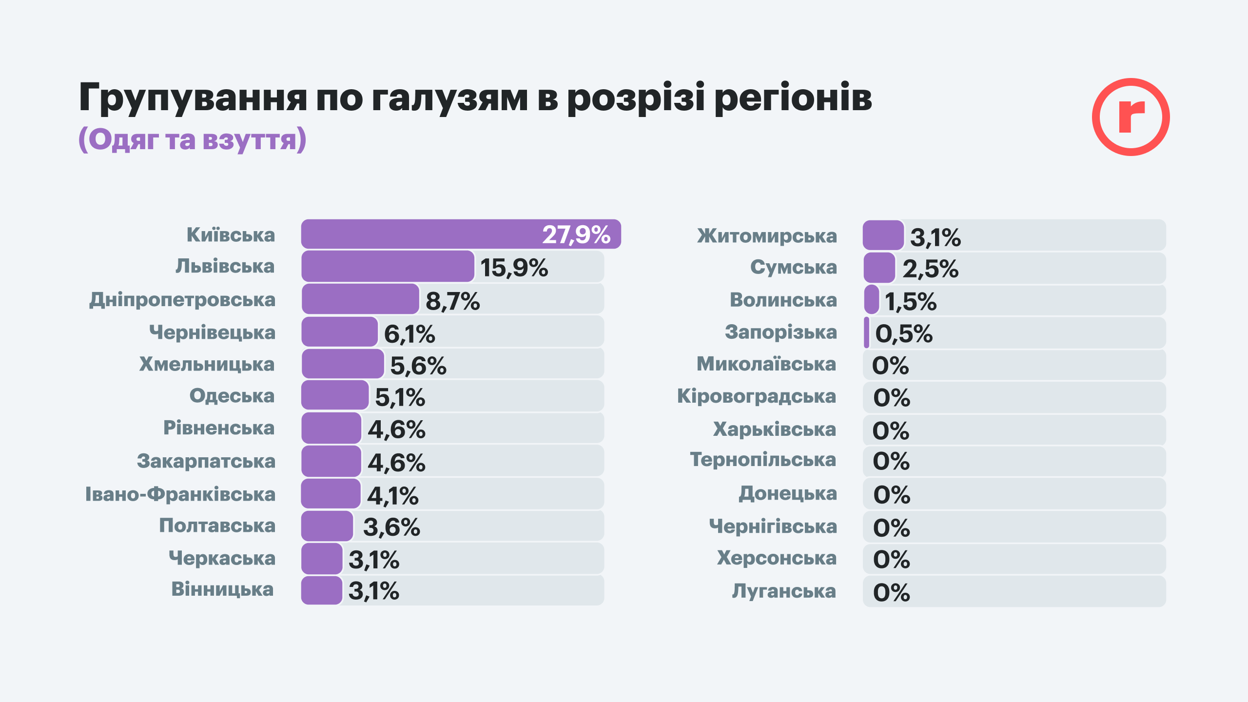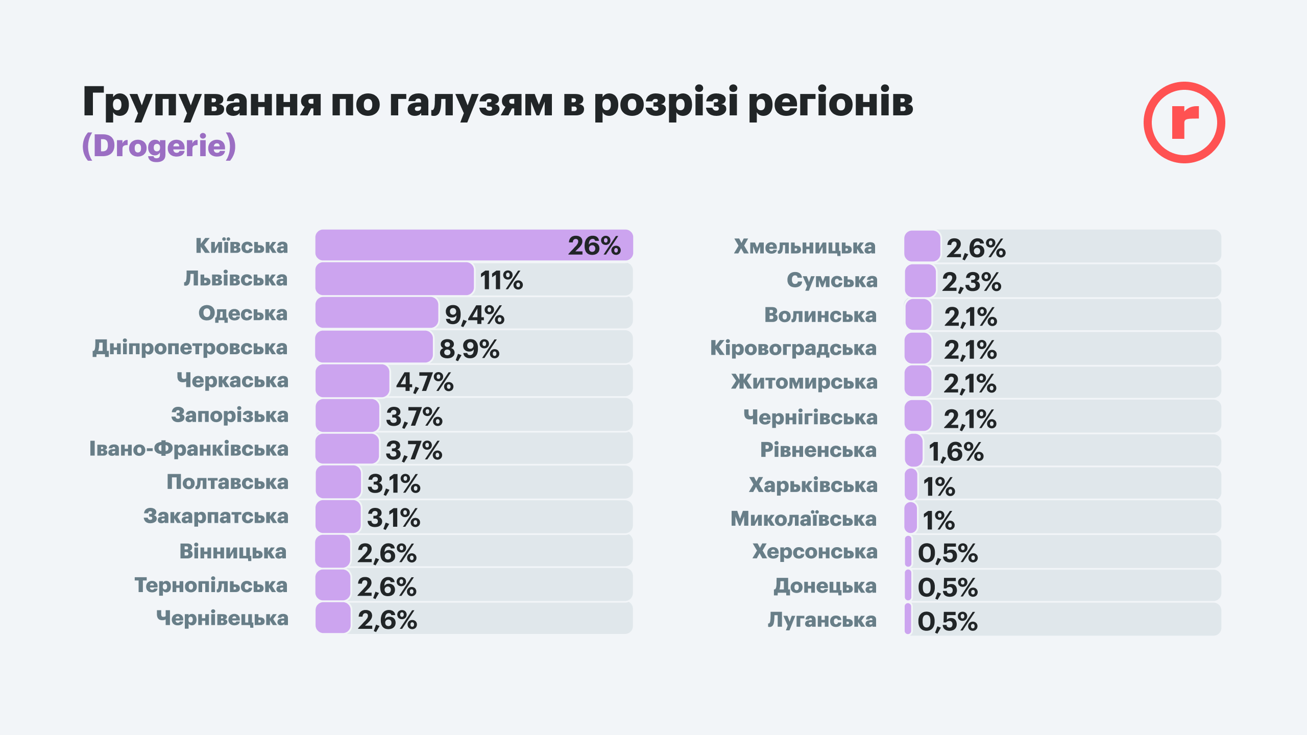 Однако в регионах, частично находившихся (или находящихся) в оккупации, сильно пострадавших от обстрелов и боевых действий, торговля не может быстро восстановиться. Даже если есть необходимость в обустройстве домашнего быта. Во-первых, далеко не везде возвращение домой может быть безопасным, а во-вторых, не скоро восстановится предыдущий спрос. Поэтому почти по всем областям, где шли бои, количество вакансий во всех сферах торговли очень ограничено. Это касается прежде всего Донецкой, Луганской, Херсонской, Николаевской, Черниговской, Сумской и Харьковской областей. В первую очередь здесь возобновляется торговля лекарствами, продуктами и товарами повседневного спроса и товарами для домашних питомцев. Примечательно, что вакансии в сфере drogerie есть даже в Луганской и Донецкой областях, пусть и по 0,5%. Это единственная отрасль, вакансии в которой есть по всей Украине.