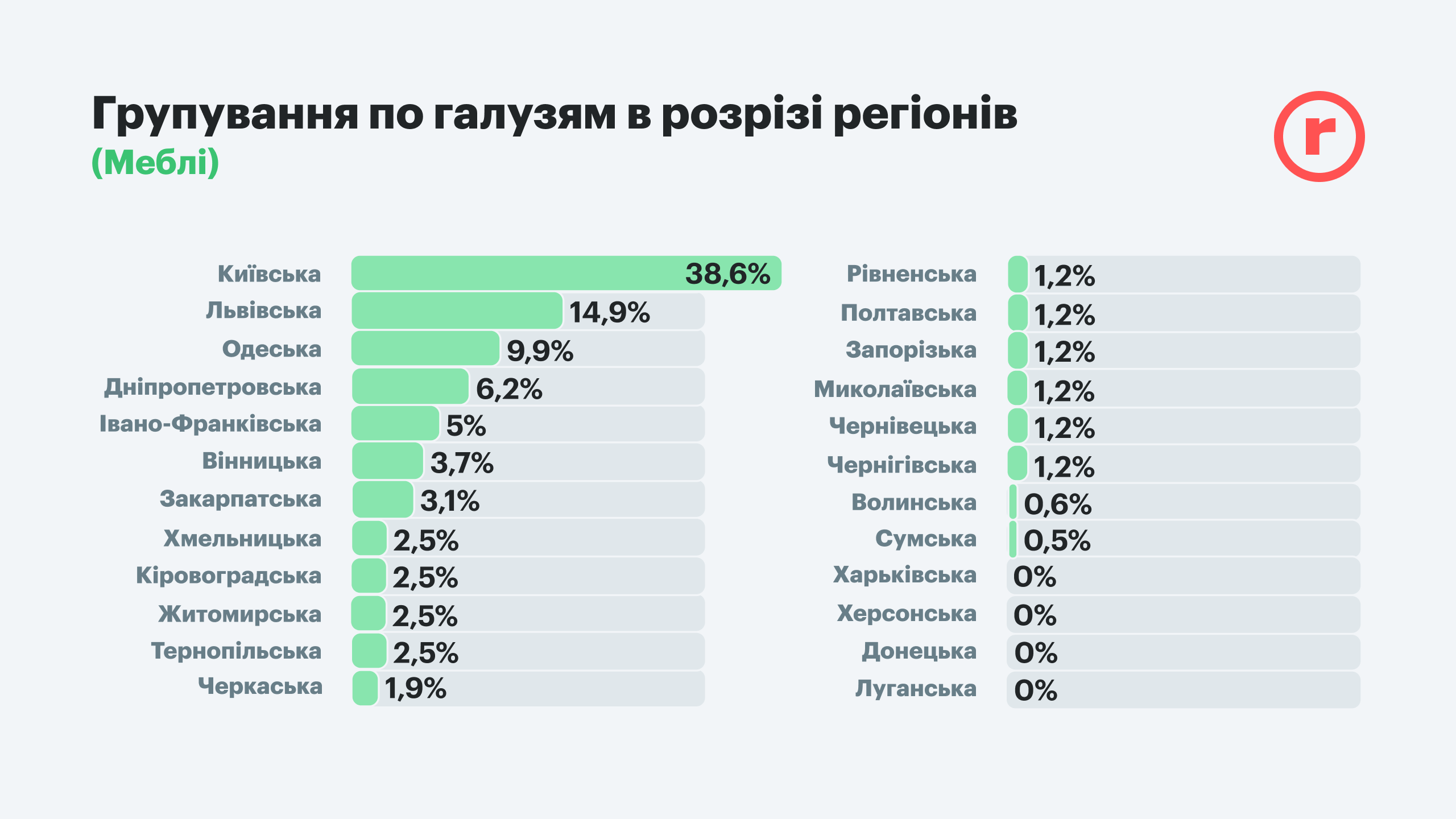 Так, по общему количеству вакансий в лидерах находятся Киев и Киевская область, а также Львов. Это объясняется тем, что Киев и область сначала были ядром бизнес-активности в стране, а после освобождения региона постепенно восстанавливается и его активность. В частности, по подсчетам КГГА, две трети киевлян уже вернулись домой. В то же время именно в столице было много приезжих работников, многие вернулись по домам с началом войны. Поэтому в столичном регионе сосредоточено 38,6% вакансий в торговле мебелью (где, как уже говорилось, самая малая доля вакансий вообще). К тому же, по возвращении люди пытаются снова налаживать свой быт и соответственно формируют повышенный спрос на товары для обустройства дома. Как ответ на это – большая доля вакансий в сфере торговли товарами DIY – 31,9%.