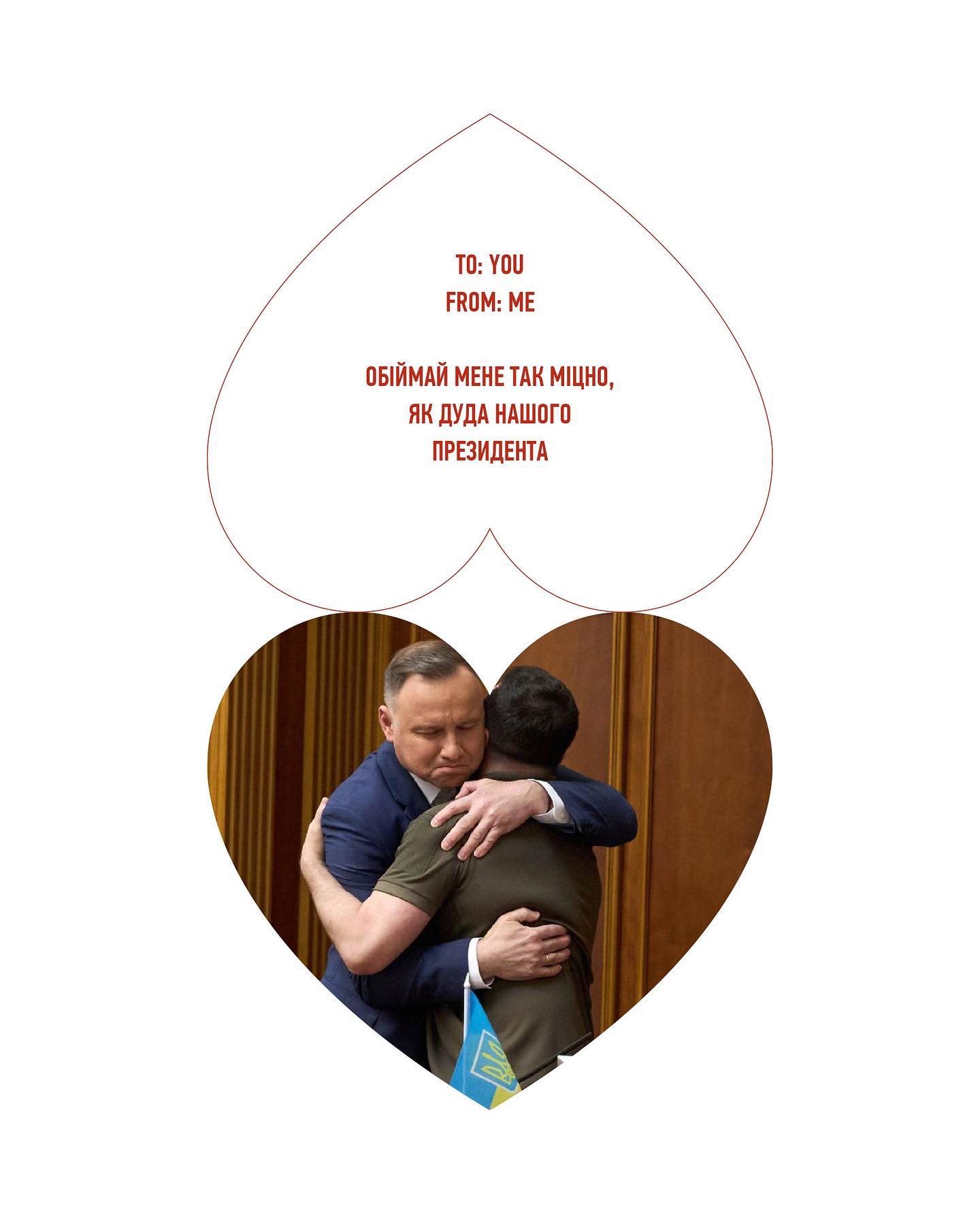 MustHave выпустил целую коллекцию открыток-валентинок об актуальной, наболевшей и, конечно же, о любви. Их героями стали Владимир Зеленский, Анджей Дуда, Олаф Шольц, Анджелина Джоли и даже русскоязычная попса. “Юмор — суперсила украинцев. Столько событий произошло, столько мем создано, что мы просто не могли обойти их ко Дню влюбленных”, – держит в курсе брэнд.