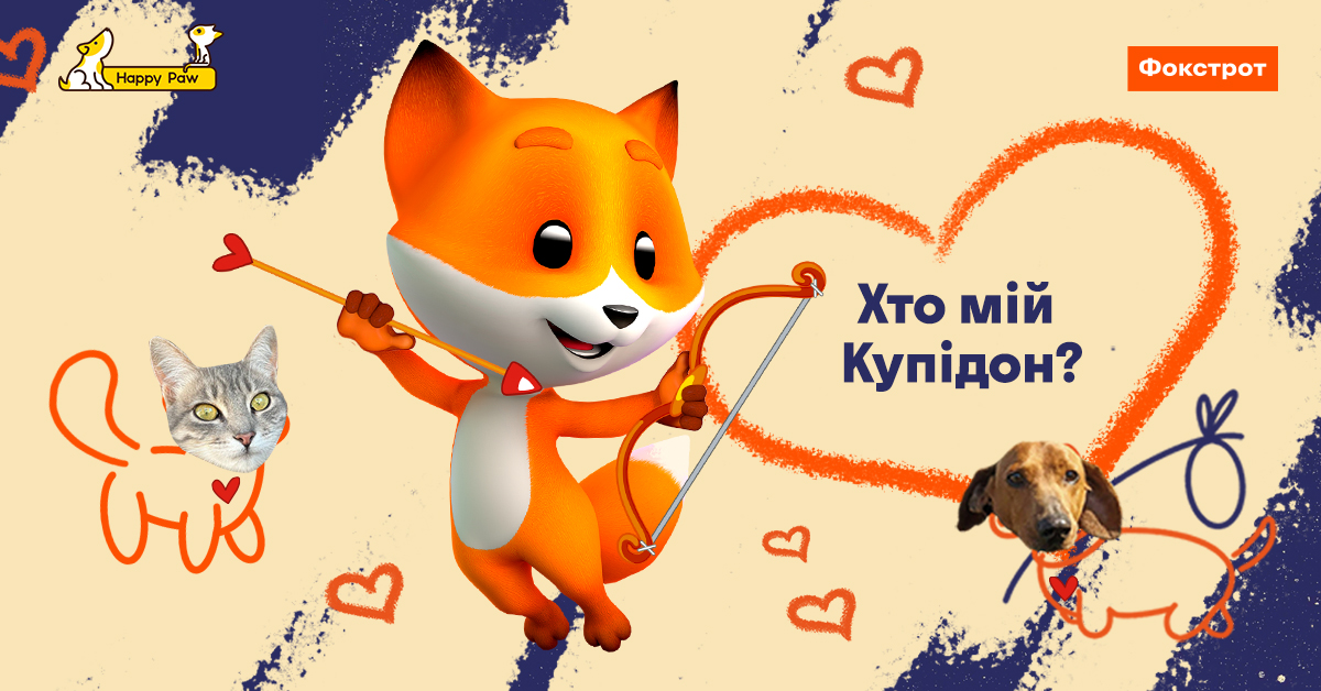 Ко дню всех влюбленных Фокстрот вместе с БФ Happy Paw запустил трогательную благотворительную акцию «Стань Купидоном для бездомного животного» с розыгрышем подарков. Для этого необходимо было протестировать в соцсетях Happy Paw “кото-песо рандомайзер” и узнать, для какого бездомного животного пользователь стал Купидоном и, поделившись результатом у себя на странице, мог помочь ей найти новый дом. Пятерым победителям пообещали подарки.