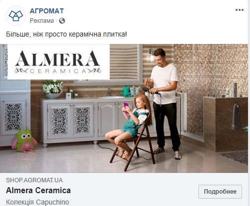 Плитка, плитка и еще раз плитка… У Агромат целых 7 объявлений такого же содержания. Интереснее, по какому алгоритму там отбирается аудитория.