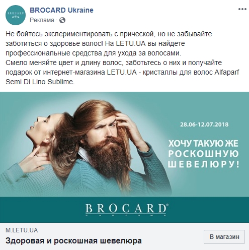 В Brocard предлагают мужчинам завести “роскошную шевелюру”, хотя средства по уходу за волосами по ссылке, вроде как, женские (?) Продвигаю, ибо абсурдно.