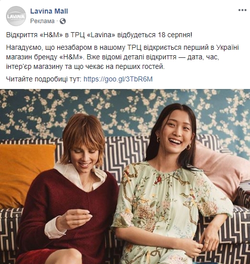 В Lavina Mall прекрасно понимают, что сделали одну из главных новостей года в украинском ритейле, а потому спешат сообщить всем и каждому об открытии первого в Украине H&M.