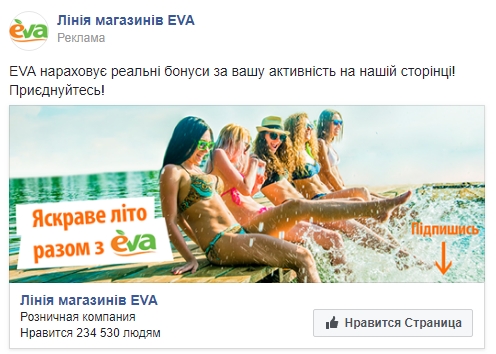 Другой drogerie-ритейлер EVA пошел еще дальше – здесь предлагаются реальные бонусы за активность на странице в Facebook. Кто-то еще удивляется, почему страница Лінія магазинів EVA прочно закрепилась на третьей позиции рейтинга самых топовых ритейлеров в Facebook?