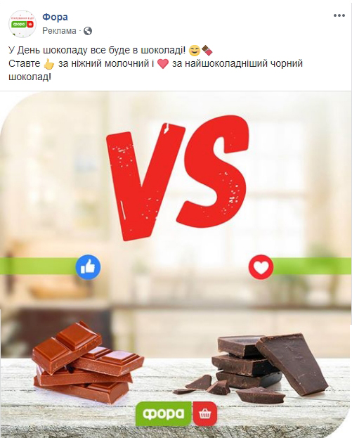 У сети супермаркетов Фора всего один пост на продвижении, и тот, чем-то напоминает публикацию Ашан про шоколад в прошлом месяце. Совпадение?