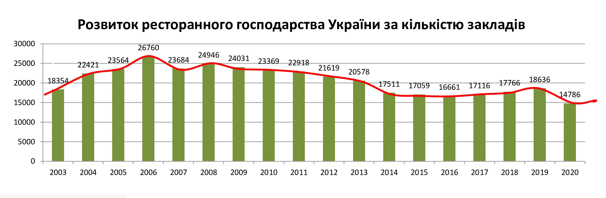 Если посмотреть, как за последние 18 лет изменялось количество заведений, нетрудно заметить, что наиболее тучными для ресторанного рынка Украины были 2006-й и 2008 год, а также период 2017-19 годов, когда этот вид бизнеса был снова в моде и на подъеме. Прошлый год пандемии коронавируса снова изменил правила игры, став одним из самых тяжелых испытаний для рестораторов.