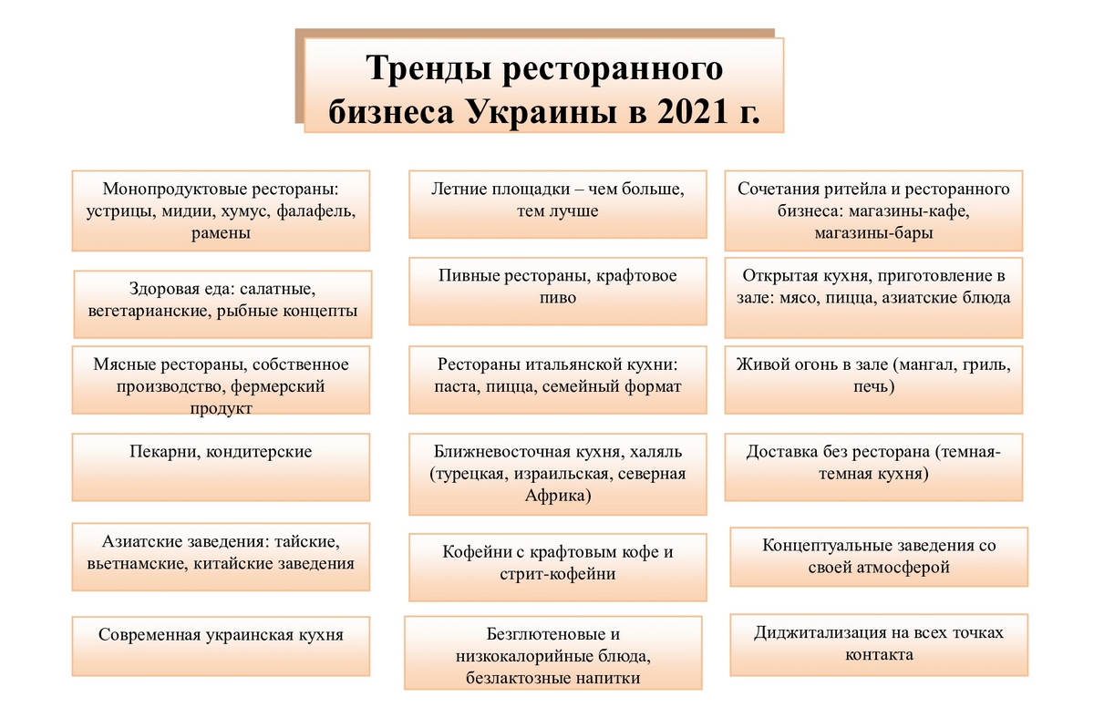 Среди основных трендов ресторанного бизнеса Украины в 2021 году можно выделить следующие: