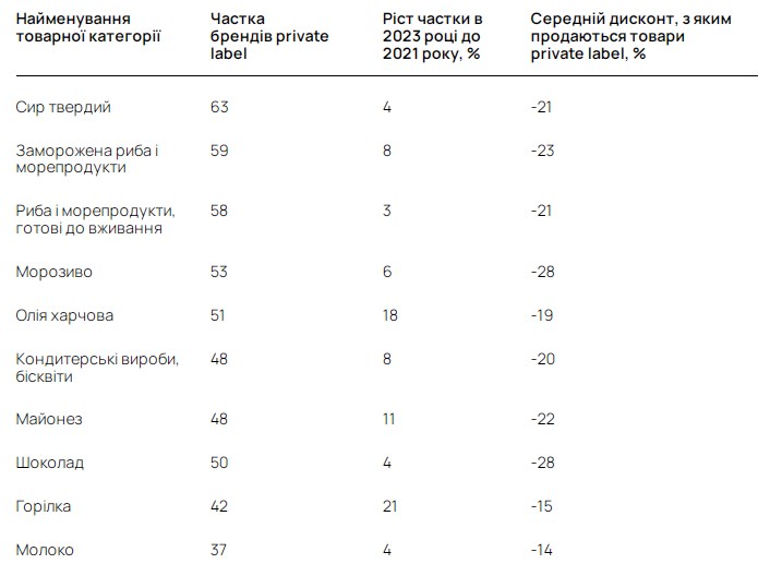 Согласно опросу, Украина остается одним из мировых лидеров по потреблению товаров собственных брендов. По состоянию на август 2023 года их доля достигла 36% и тем самым превысила довоенный показатель в 33%. Но как отмечает Михаил Гафуров, увеличение доли private label не приводит к росту среднего чека и прибылей сети.
