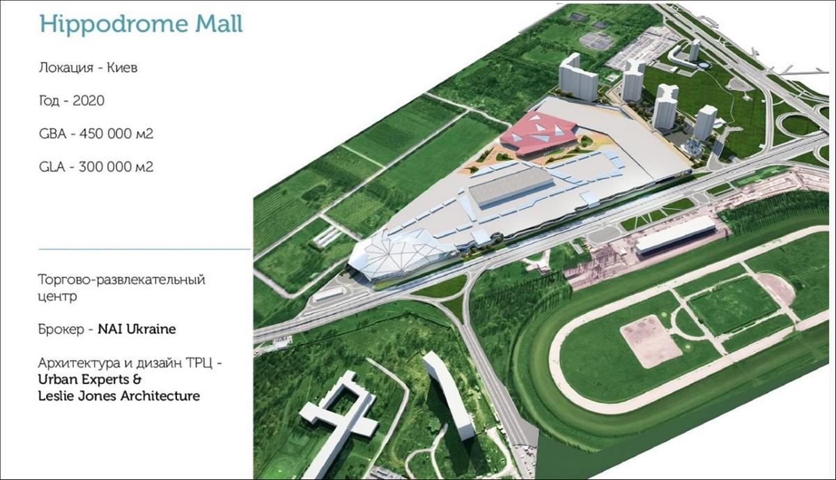 После запуска в эксплуатацию первых трех супермоллов (Lavina, Blockbuster, Ocean Mall) девелопер обещает вплотную заняться завершением строительства еще трех объектов, расположенных возле станций метро. Наиболее интенсивно в последнее время работы велись на локации будущего ТРЦ Hippodrome Mall (ранее ТРЦ Южный). Эту локацию как место первого открытия IKEA анонсировал Александр Черницкий еще в мае 2017 года. Объект площадью 450 000 кв. м собирались строить в конце того же года по ул. Глушкова, 9 в Голосеевском районе Киева. Его позиционировали как самый крупный торговый центр Украины. Здесь Вагиф Алиев выкупил у компании народного депутата Сергея Таруты права на участок земли с “Ледовым стадионом” под строительство ТРЦ со спортивным комплексом на 60 000-70 000 кв. м.
