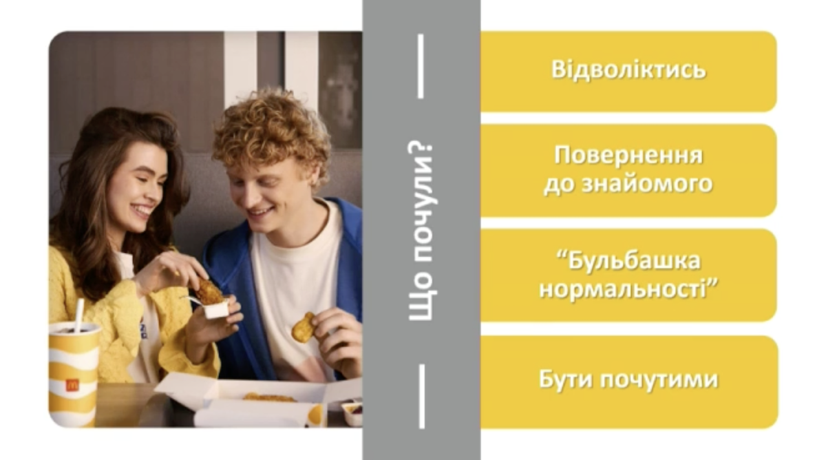 Во время своего выступления на Украинском маркетинг форуме CEE Strategic Director OMD Optimum Media Ukraine Наталья Романенко и менеджер по изучению поведения клиентов McDonald’s в Украине, Чехии и Словакии Максим Иванов рассказали как как глобальному бренду стать ближе к украинцам во времена вызовов, а также как у компании меняется подход. RAU публикует главные положения их выступления.