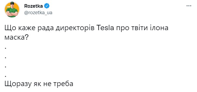 Rozetka переиграла собственный же слоган “каждый раз, что надо”. На фоне акций Tesla, рухнувших после скандального твита генерального директора компании, совет директоров скорее иного мнения.