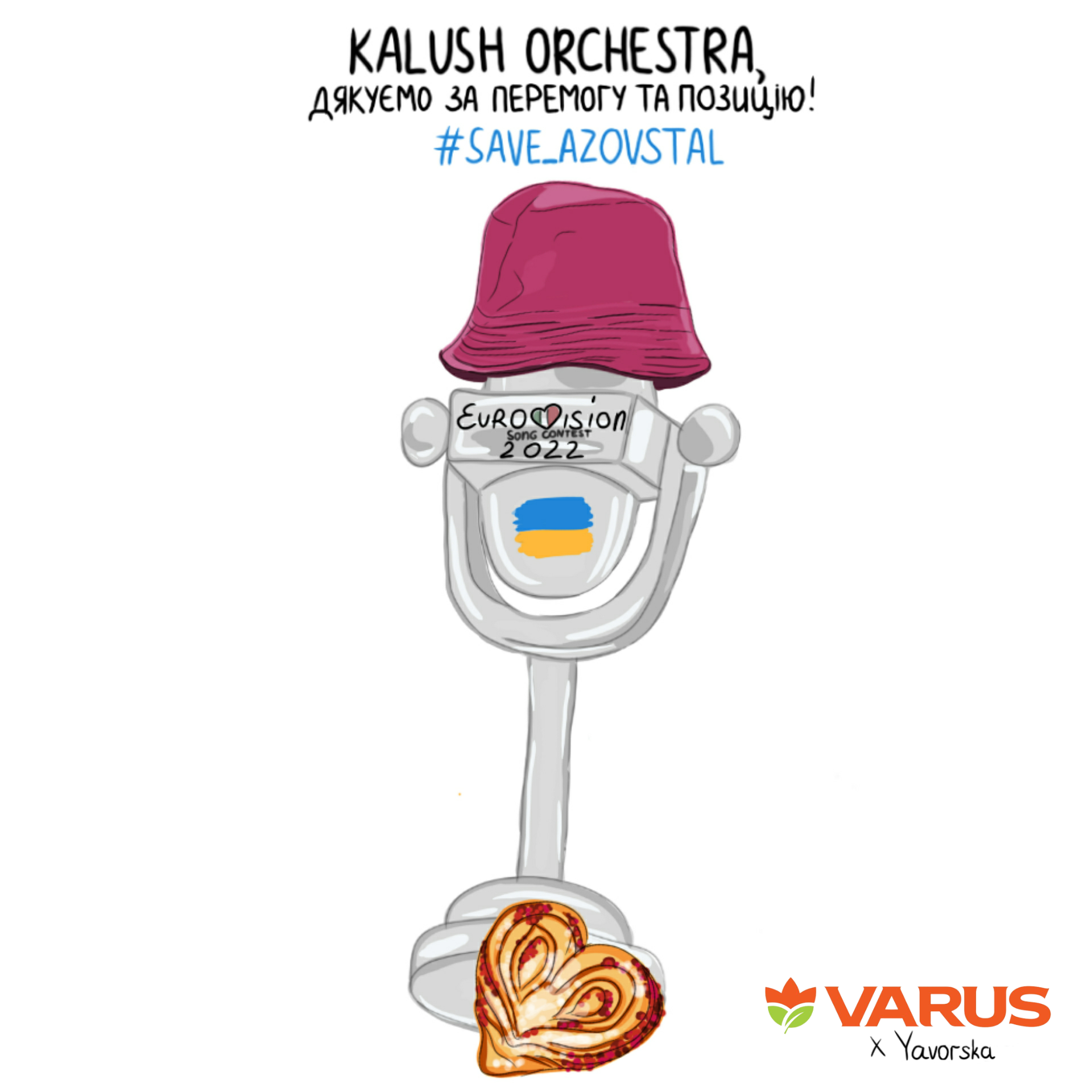 В сети магазинов Varus поздравили Kalush Orchestra с победой креативной фотографией и назвали сдобную булку с вишней из ассортимента «Стефания».