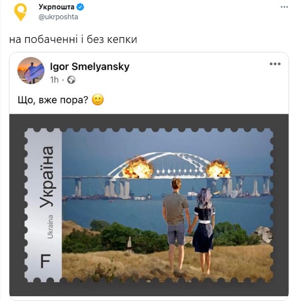 Еще одним твитом Укрпошта напомнила, чего ждут украинцы дальше. Пользуясь случаем, генеральный директор Укрпошта Игорь Смелянский анонсировал соответствующую марочку.