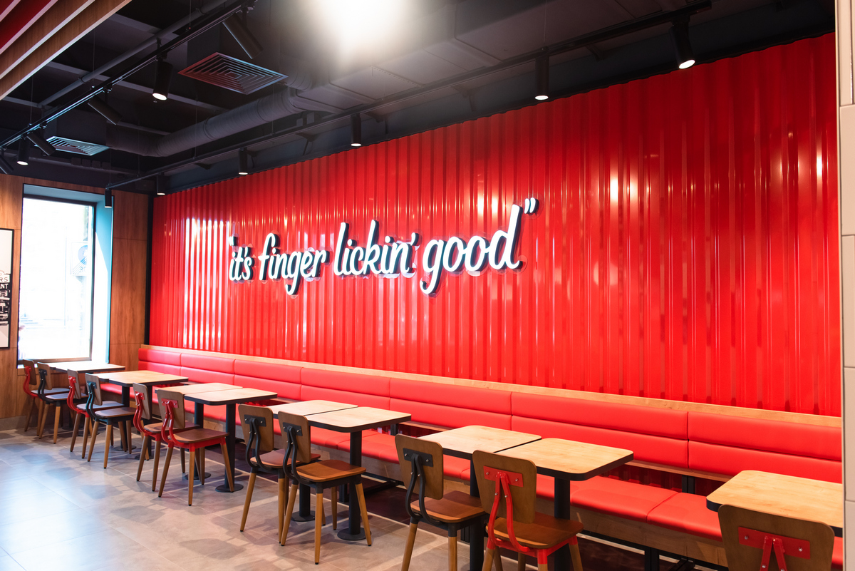 Площадь заведения – около 288 кв. м, в нем предусмотрено 86 посадочных мест, чтобы гости могли с комфортом отведать фирменные блюда KFC.