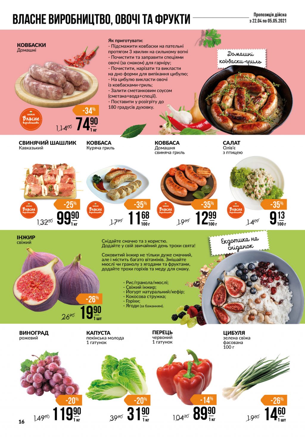 Акции стали еженедельными. Также еженедельно выпускается листовка с новым рецептом, в которой предлагается приготовить небанальное блюдо из обычных ингредиентов. Составляющие еженедельных рецептов предлагаются по скидке. Клиенты VARUS могут узнать о «рецепте недели» из газеты, на специальном лендинге на сайте www.go.varus.ua, через viber-бот, в e-mail-рассылке и push-сообщении.