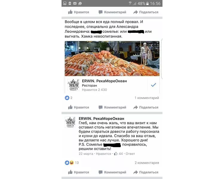 Главное здесь – не переходить на хамство, которое клиенты могут и не оценить. Вот здесь, на наш взгляд, ресторан остается в пределах разумных рамок (претензия выглядит сомнительно, какой-то работы над ошибками со стороны компании не требует, но отреагировать нужно):