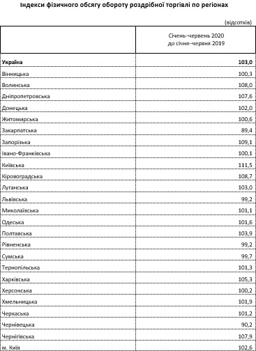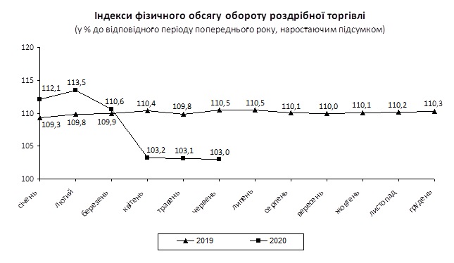 Как сообщает Государственная служба статистики Украины, физический объем оборота розничной торговли в январе-июне 2020-го вырос на 3% по сравнению с аналогичным периодом прошлого года. В июне оборот розничной торговли вырос на 8,8% относительно мая этого года, однако всего на 1,4% по сравнению с июнем 2019-го.