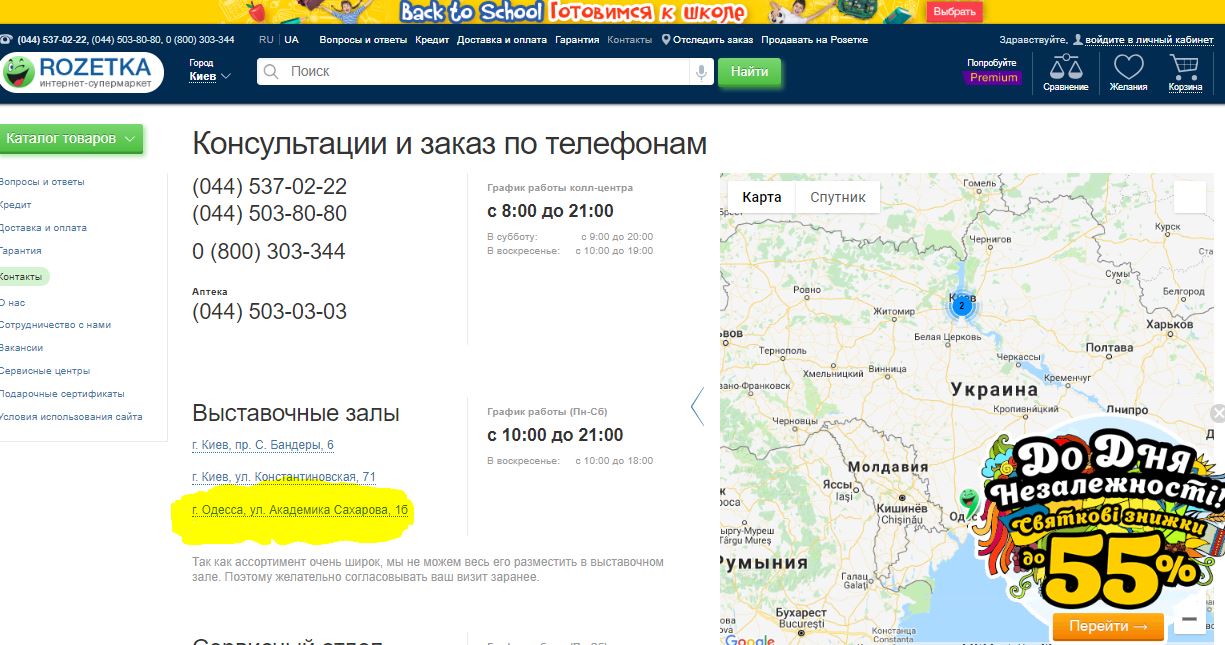 Информация об одесском магазине и точке выдачи товаров уже появилась на сайте Rozetka.ua.